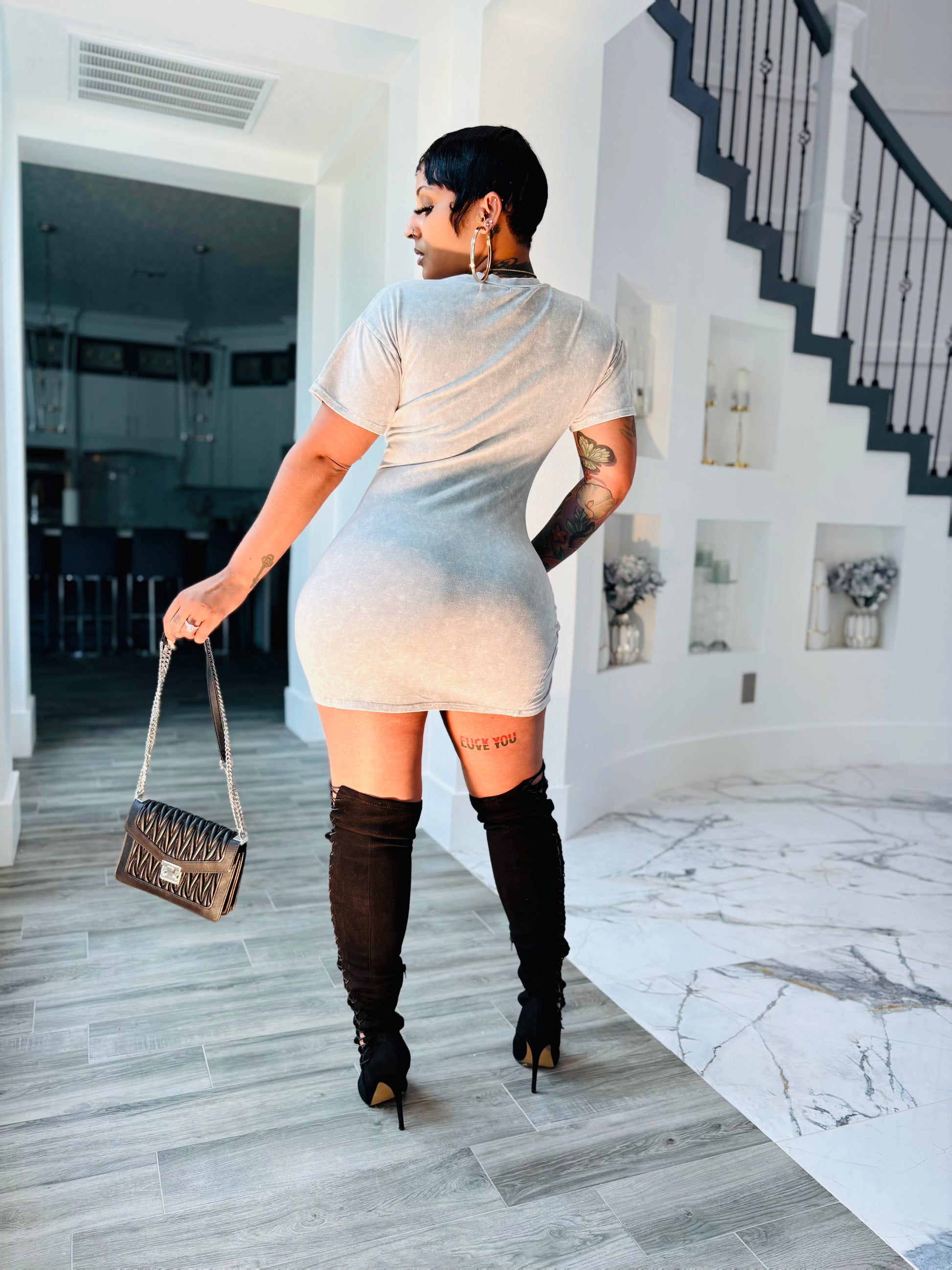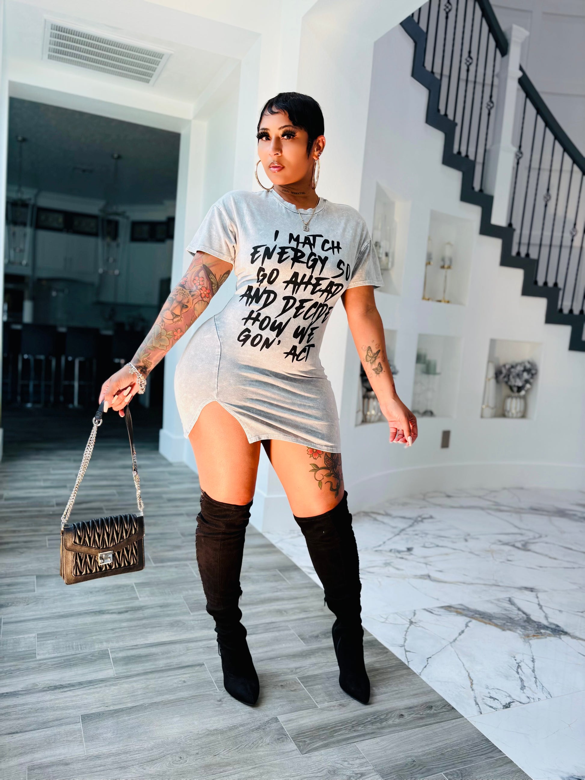 Mineral Wash Graphic Print Side Slit T-Shirt Dress
