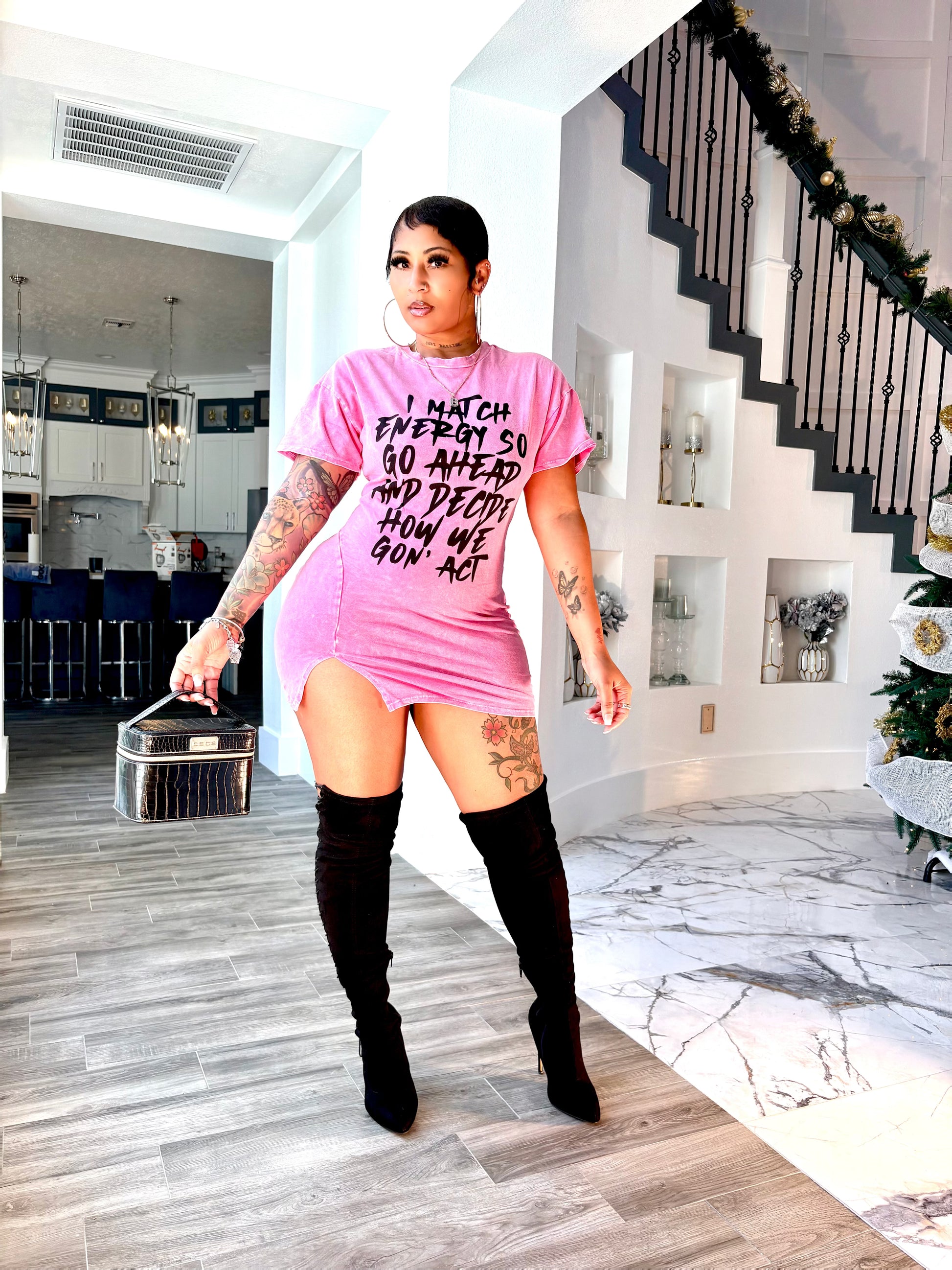 Mineral Wash Graphic Print Side Slit T-Shirt Dress