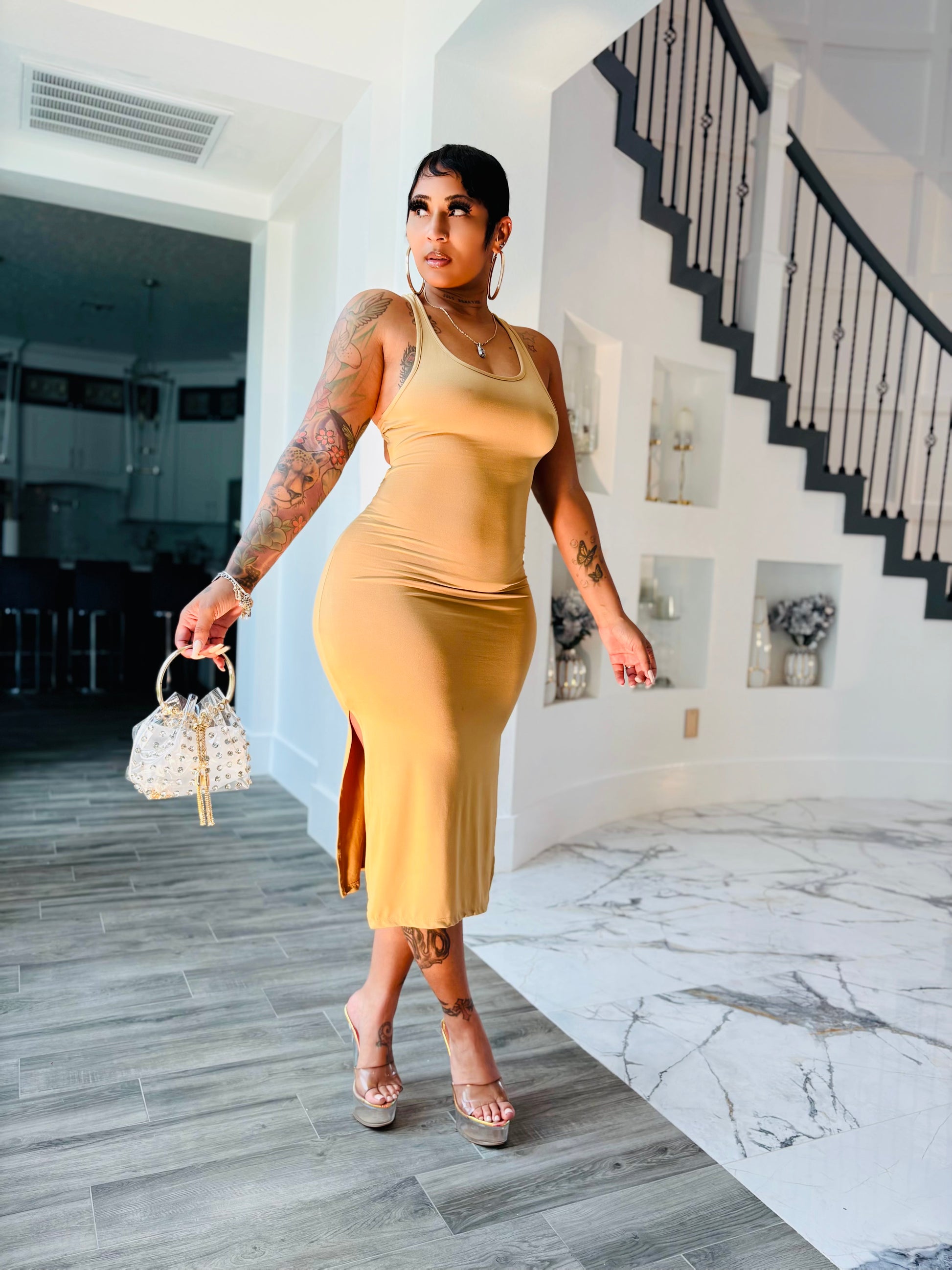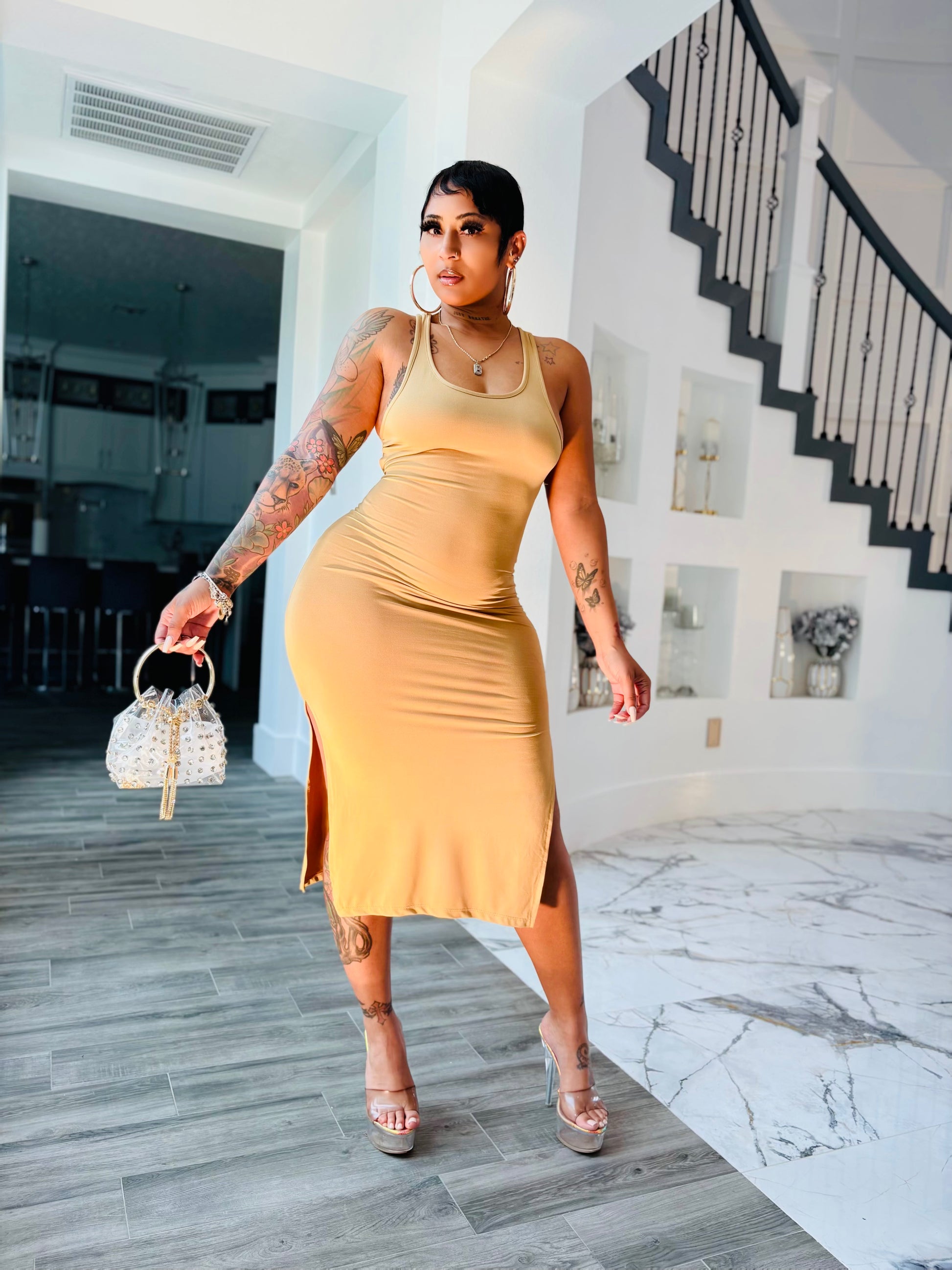 Open back midi fashion dress - Strap to tie knot in back (STRETCHY)